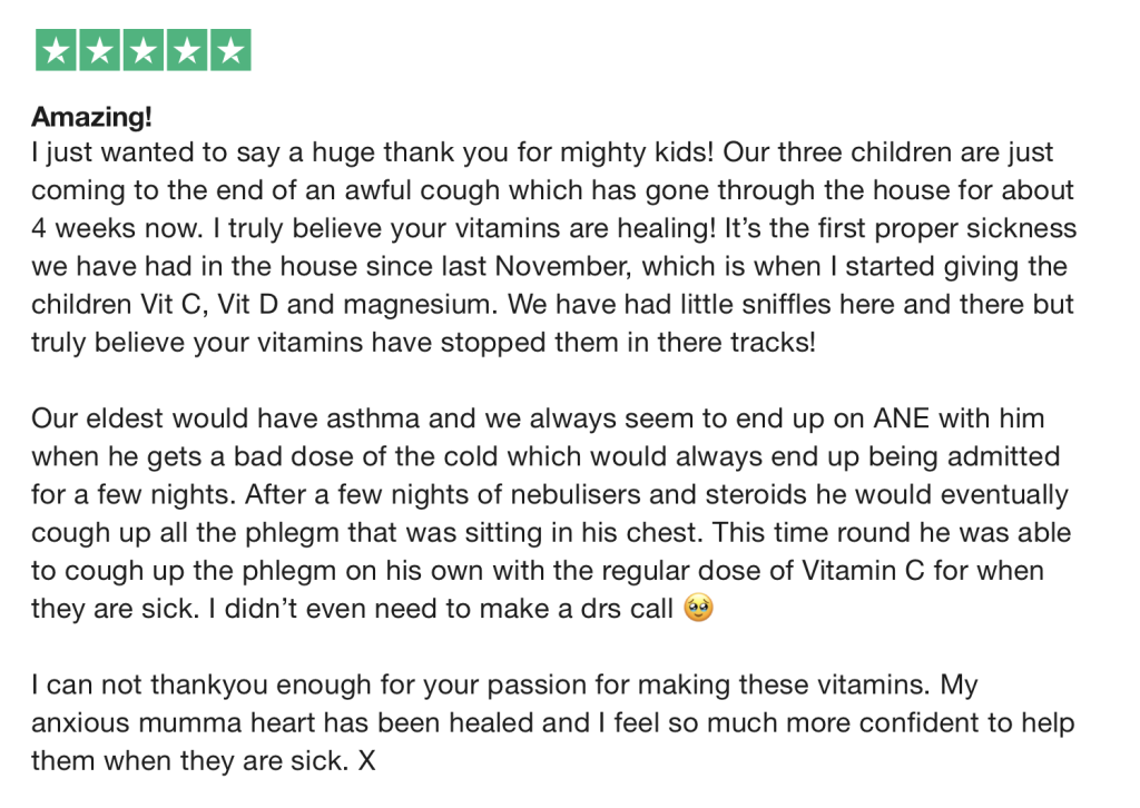 Here are some incredible reviews from Mighty Kids customers who have seen the benefits and support of using our liposomal supplements in the management of asthma and other respiratory issues: